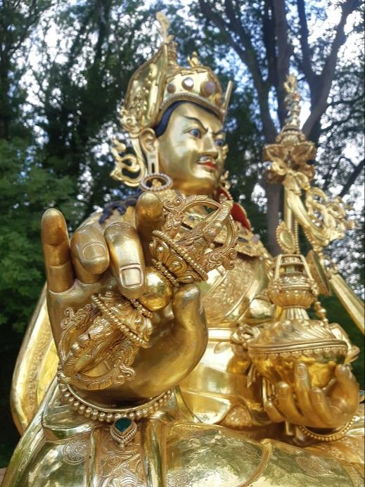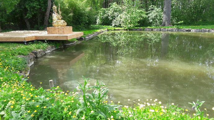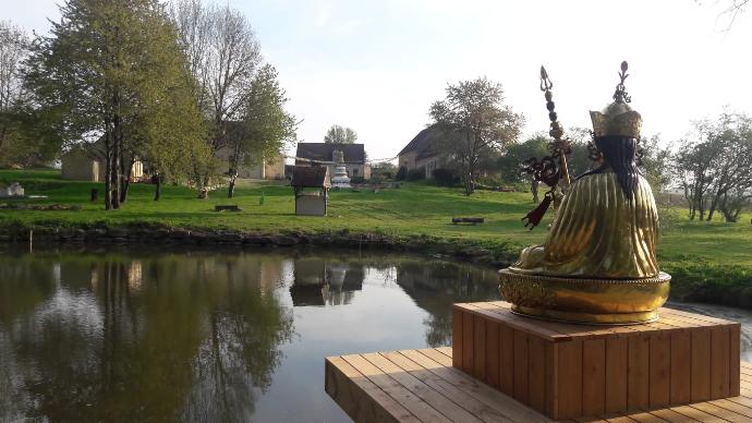 Acquise en mai 2022, une magnifique statue de Padmasambhava (Gourou Rinpoché) a été posée sur notre étang !