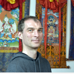 Pratiquant régulier, il anime chaque semaine au centre les rituels de Tara ou du Bouddha de médecine qui ont transformé sa vie et dont il souhaite autant que possible partager les bienfaits.