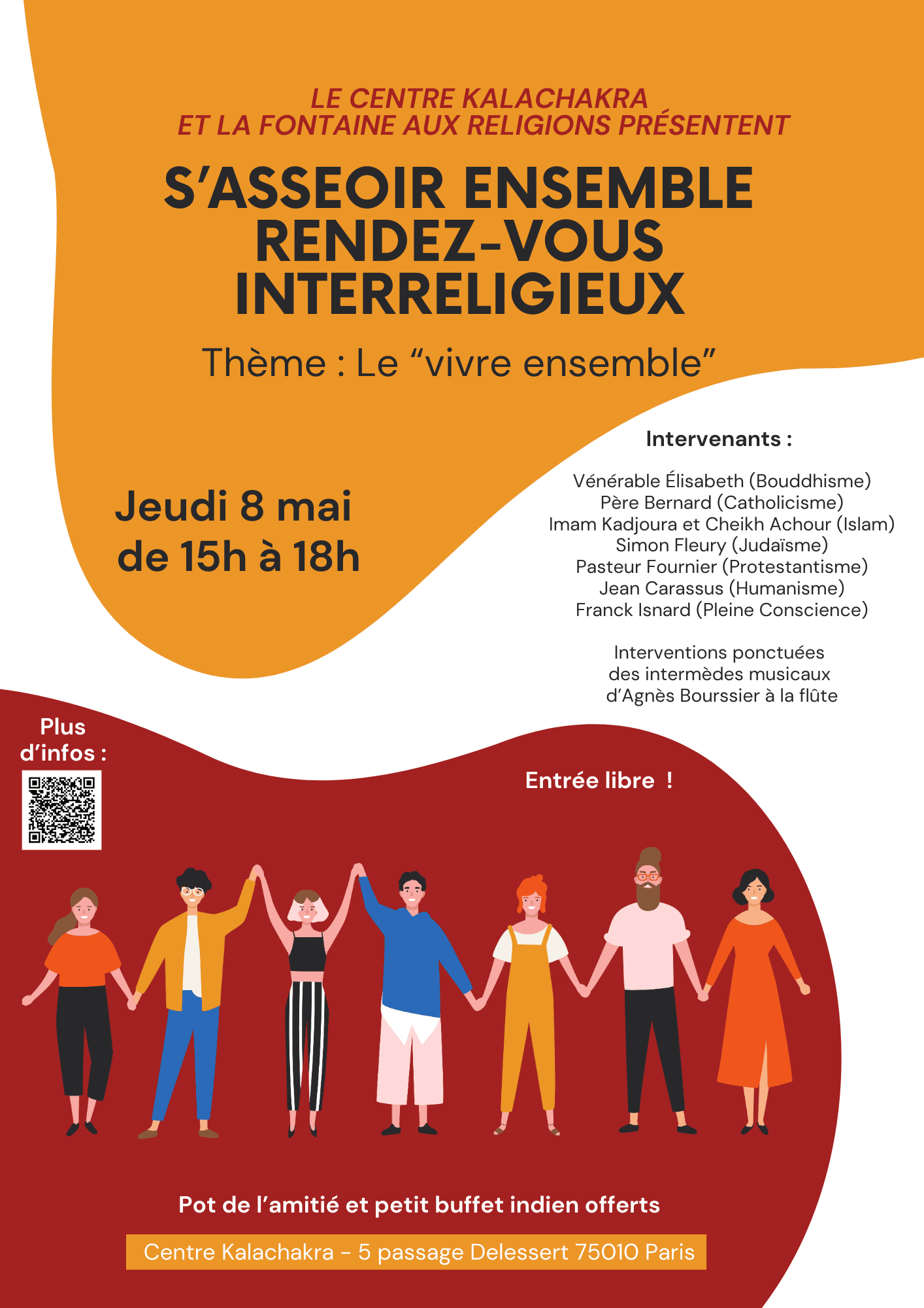 Ce programme est organisé conjointement avec l'association "La Fontaine aux Religions" et rassemblera sept croyances et philosophies : bouddhiste, catholique, hindouiste, humaniste, juive, musulmane et protestante.