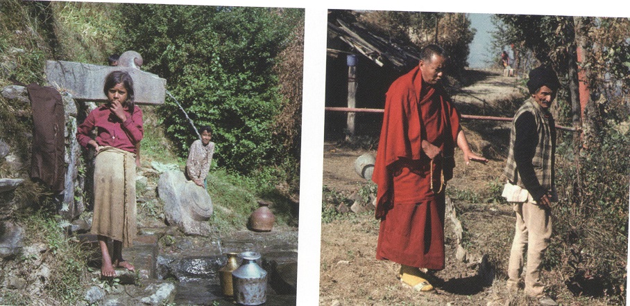 Pratiquement depuis les débuts de Kopan, l’ami fidèle de Lama Yéshé, Tchowkidar (photo, à droite), aplanissait avec douceur et tact bien des litiges locaux, notamment ceux relatifs à l’accès à la source en contrebas. Les Népalais considèrent les sources comme des lieux hindous sacrés. Il arrivait que des femmes népalis en colère jettent de l’eau sur les filles hippies Injis qui s’éclaboussaient inconsidérément. Au Népal, hindous et bouddhistes pensent que chaque source est sous le contrôle des nagas, des esprits ayant la forme de serpents, et pareil comportement irrespectueux était jugé outrageant et hautement déplacé.
