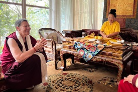 – Nous avons eu l’immense chance d’être reçus par Khandro-la (avec pour moi le sentiment d’avoir été reçue par Tara en personne), Tsoknyi Rinpoché dans sa nonnerie et son frère Yongey Mingyour à Tergar. A chaque fois, les vibrations très spéciales des lieux où nous les retrouvions m’ont semblé palpables. Il règne dans ces lieux un climat tout à fait différent du monde qui les entoure. Tout y est paisible, tout est dédié au Dharma, tout est beau et entretenu avec diligence jusque dans les moindres détails… On s’y sent en complète sécurité et l’accueil y est toujours tellement chaleureux. On n’a d’ailleurs aucune envie d’en repartir.