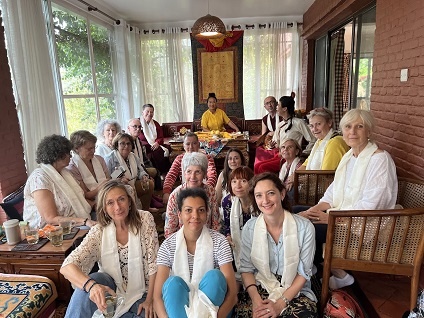 L'un des moments exceptionnels, et il y en a eu de nombreux, a été pendant la remise des khatas avec Khandro-La : je voulais essayer de faire une photo pour chacun lors de la remise des khathas, afin qu’il ou elle puisse chérir et revivre le souvenir de ce moment unique avec des êtres extraordinaires. Et là j'ai vu et ressenti les 16 bénédictions, vu et ressenti, non pas une bienveillance “ordinaire” mais quelque chose qui m'a absolument bouleversée : l'accueil absolu, la compassion extra-ordinaire, la même pour chacun et chacune d'entre nous. Une vision et une rencontre qui m'ont complètement transpercée, remuée, chamboulée de l'intérieur, la sensation d'être vue au-delà des mots...