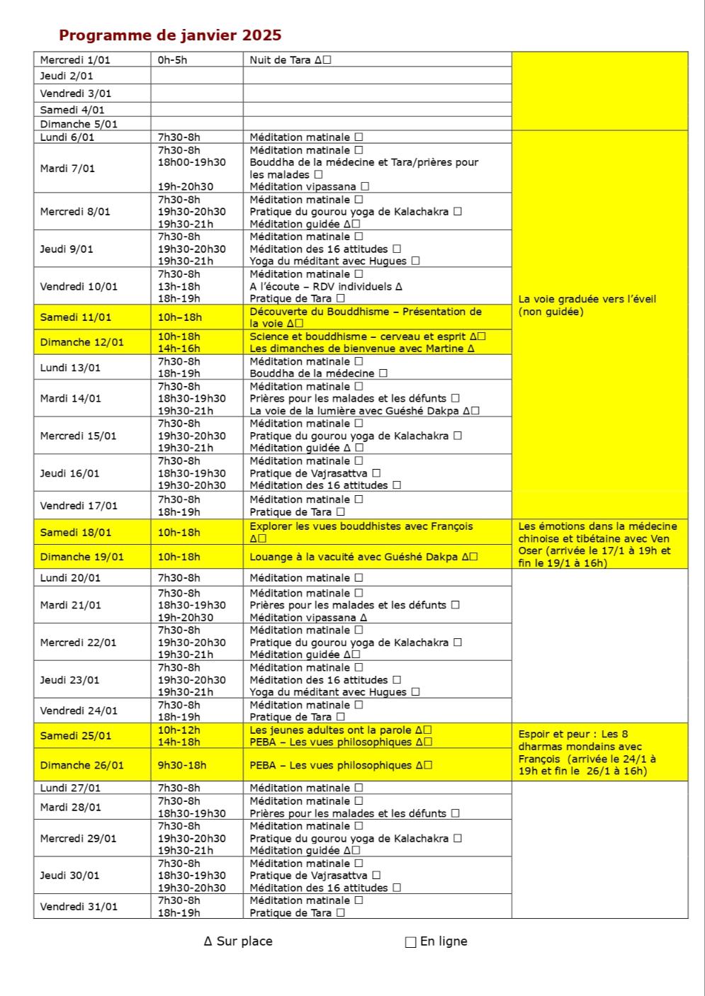 Voici les événements exceptionnels (en dehors des programmes d'étude) à ne pas manquer début 2025 au centre Kalachakra :