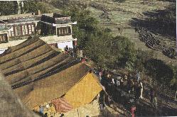 « Soudain, elle était en haut sur le toit plat, criant et hurlant. Il était évident que c’était une âme en grande détresse. Lama se leva d’un bond et me demanda de l’accompagner pour négocier avec elle. Il s’inclina devant elle plusieurs fois sans rien dire, le visage plein d’inquiétude. Quand il eut capté toute son attention, il la remercia d’être là. « Elle est ici pour m’aider, me dit-il. Elle est ici par compassion. » Quand elle recommença à gémir et à pleurer, se laissant tomber comme un sac sur le sol, Lama lui dit : « Merci d’être ici, de m’aider. Tu es venue pour prendre sur toi toutes mes souffrances. Merci, merci, merci. »