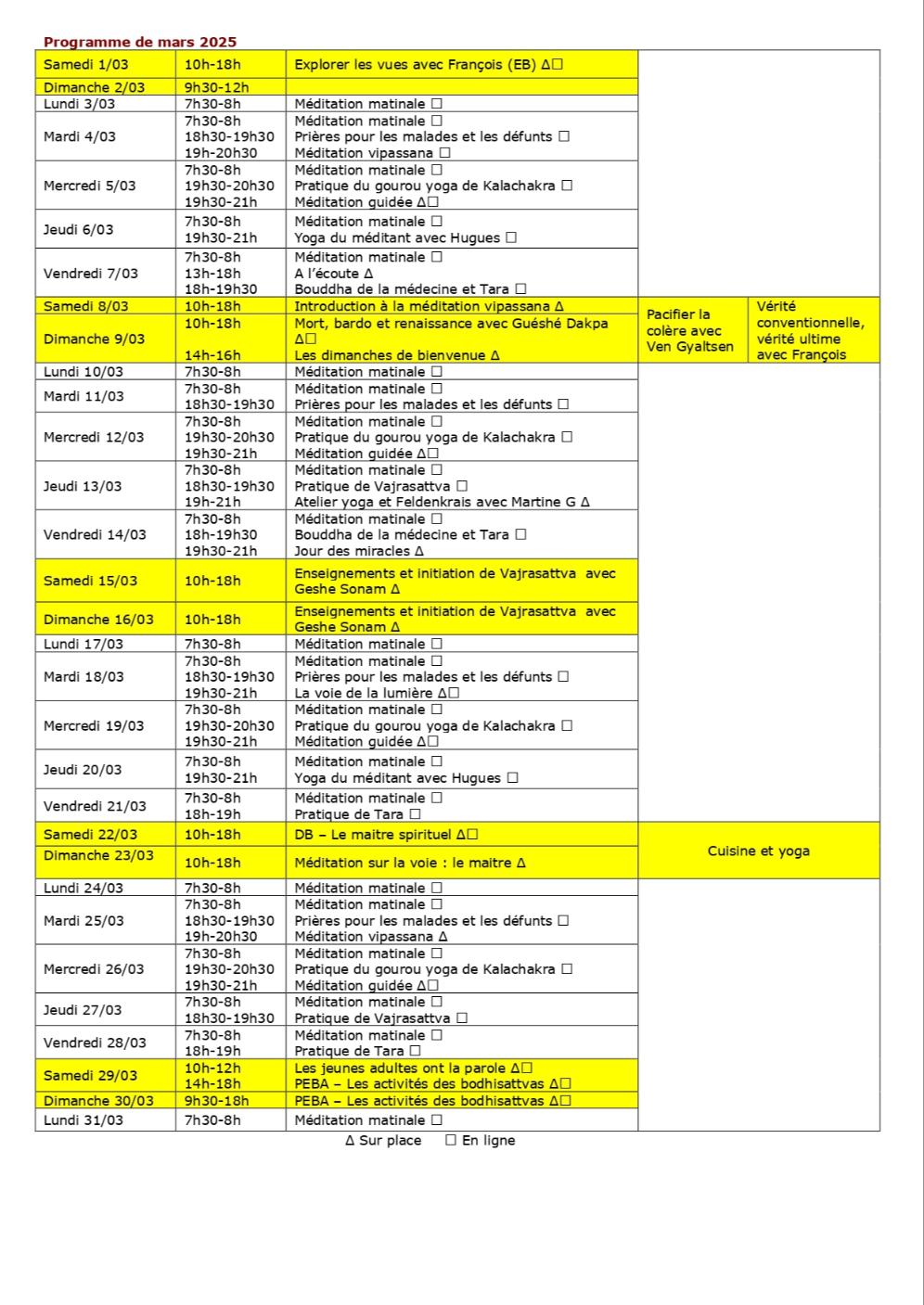 Voici les évènements exceptionnels (en dehors des programmes d'études) à ne pas manquer en mars 2025 au centre Kalachakra :