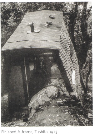 Après le troisième cours, Lama [Yéshé] avait demandé à l’architecte suisse Chris Vautier s’il pouvait venir à Toushita pour aider à construire des cabanes de retraite. […] « Lama ne pouvait pas lire les plans de construction, alors je lui ai construit un modèle en forme de A en lui disant les matériaux dont nous aurions besoin, se rappelle Chris. C’est alors que je me suis disputé avec lui. Il voulait que je coupe n’importe quel arbre et moi, je disais préférer acheter le bois nécessaire dans une scierie. « Ces arbres sont bien assez droits ! » Tel était le point de vue de Lama. Nous avons fini par en couper quelques-uns mais durant l’été, le bois vert s’est rétréci et nous avons dû procéder à la réfection des cabanes.