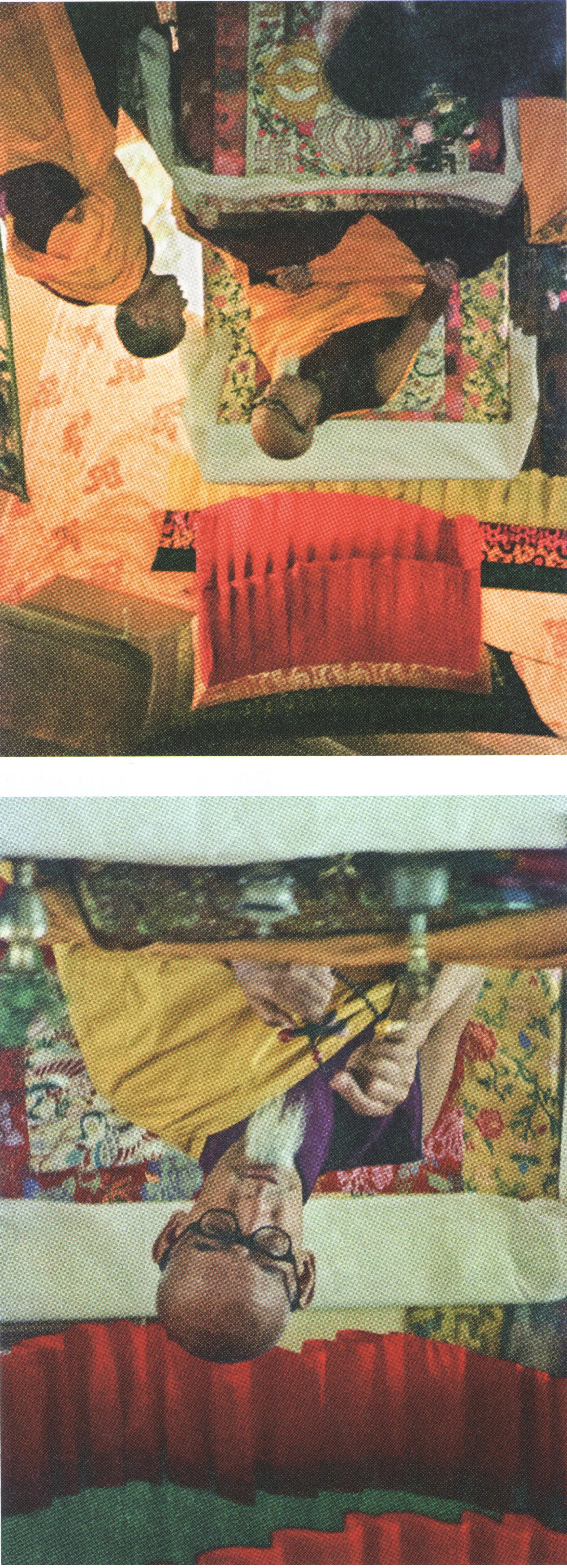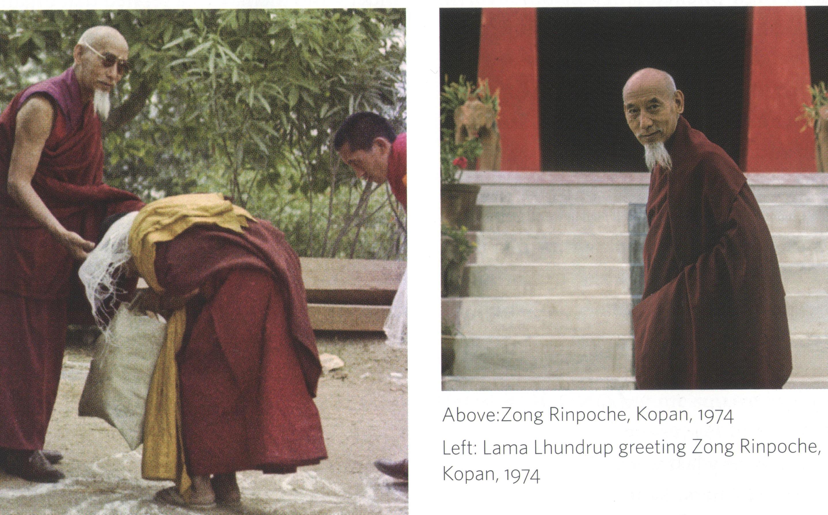 […] Les injis [les Occidentaux] restèrent littéralement bouche bée face à la présence ascétique de Zong Rinpoché, à la longue barbe blanche clairsemée qui tombait droit sous son menton, à ses yeux perçants. Il rayonnait la puissance et la discipline. Plus étonnant encore était le comportement de Lama Yéshé vis-à-vis de son vieux maître. Disparu le jovial boss, chaque action de Lama témoignait d’une humilité et d’une dévotion absolues.