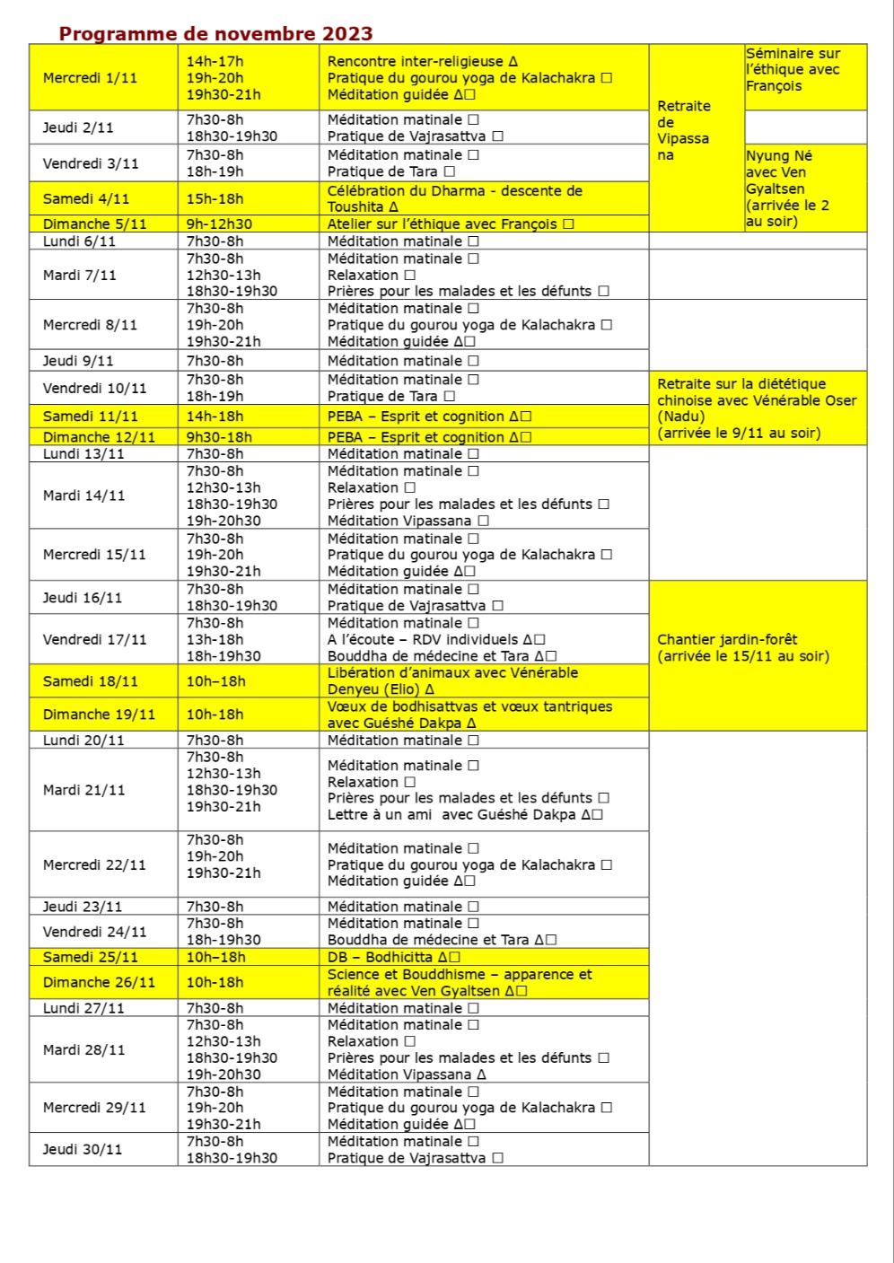 Retrouvez ci-dessous le tableau du programme de novembre,