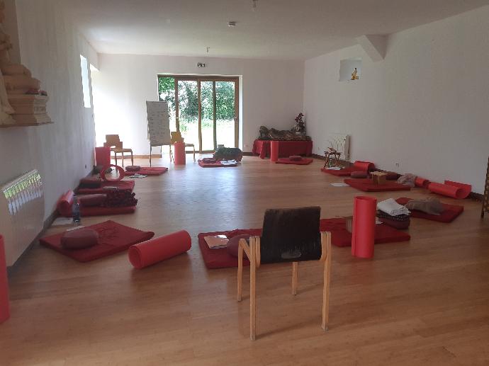 Notre gompa est un agréable espace lumineux aux pierres apparentes et d’une belle hauteur sous plafond, pouvant accueillir une cinquantaine de personnes. Chaises, tapis, coussins et tablettes sont mis à votre disposition. Cet espace sacré étant agrémenté d’un autel bouddhique, il est idéal pour l’organisation d’événements du type :