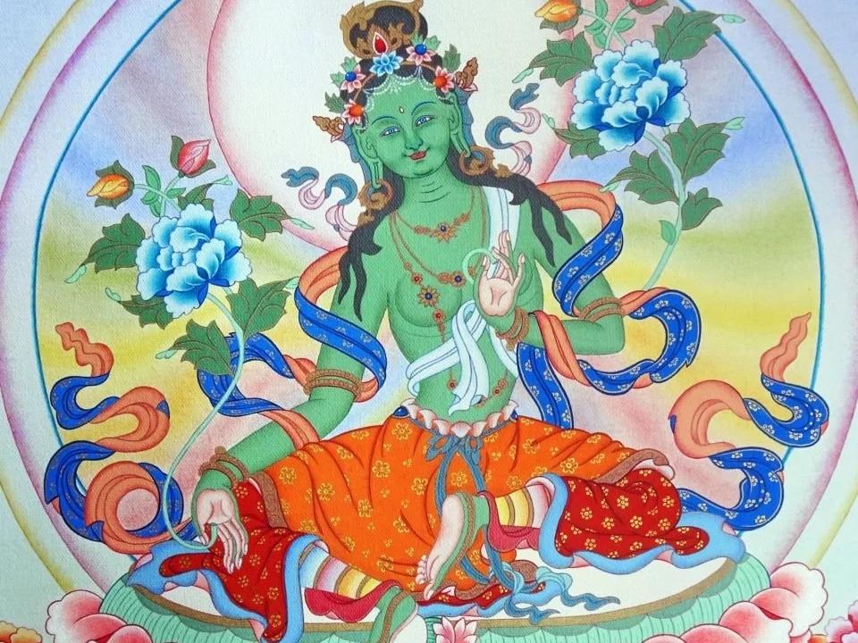 Appelée “Noble Libératrice” ou “Mère de tous les Bouddhas”, Tara protège de tous les dangers et vient en aide aux êtres sensibles touchés notamment par les difficultés rencontrées dans leur vie quotidienne, comme l’anxiété ou l’adversité.